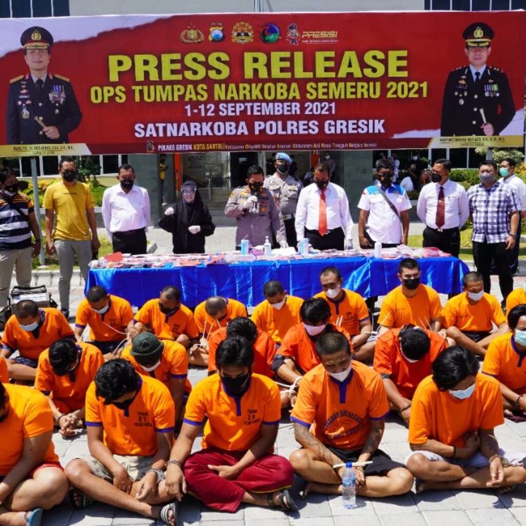 Gresspedia Gresik – Operasi Tumpas Narkoba membuahkan hasil dengan dilaksanakan Press Release Operasi Tumpas Narkoba Semeru 2021 di Halaman Mapolres Gresik, Senin (20/9/2021).