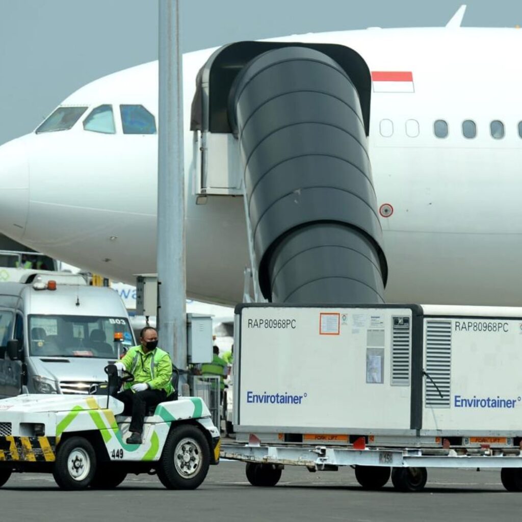 Gresspedia.id, Tangerang-Banten – Pemerintah terus berupaya keras untuk menghadirkan vaksin Covid-19 dalam rangka memenuhi kebutuhan vaksinasi di Indonesia. Upaya tersebut salah satunya diwujudkan dengan kembali mendatangkan 8 juta dosis bahan baku vaksin Sinovac yang tiba di Bandara Internasional Soekarno-Hatta, Tangerang, pada Senin, 31 Mei 2021. Vaksin tersebut diangkut dengan menggunakan pesawat Garuda Indonesia dengan nomor penerbangan GA 891 dan mendarat sekitar pukul 11.48 WIB.