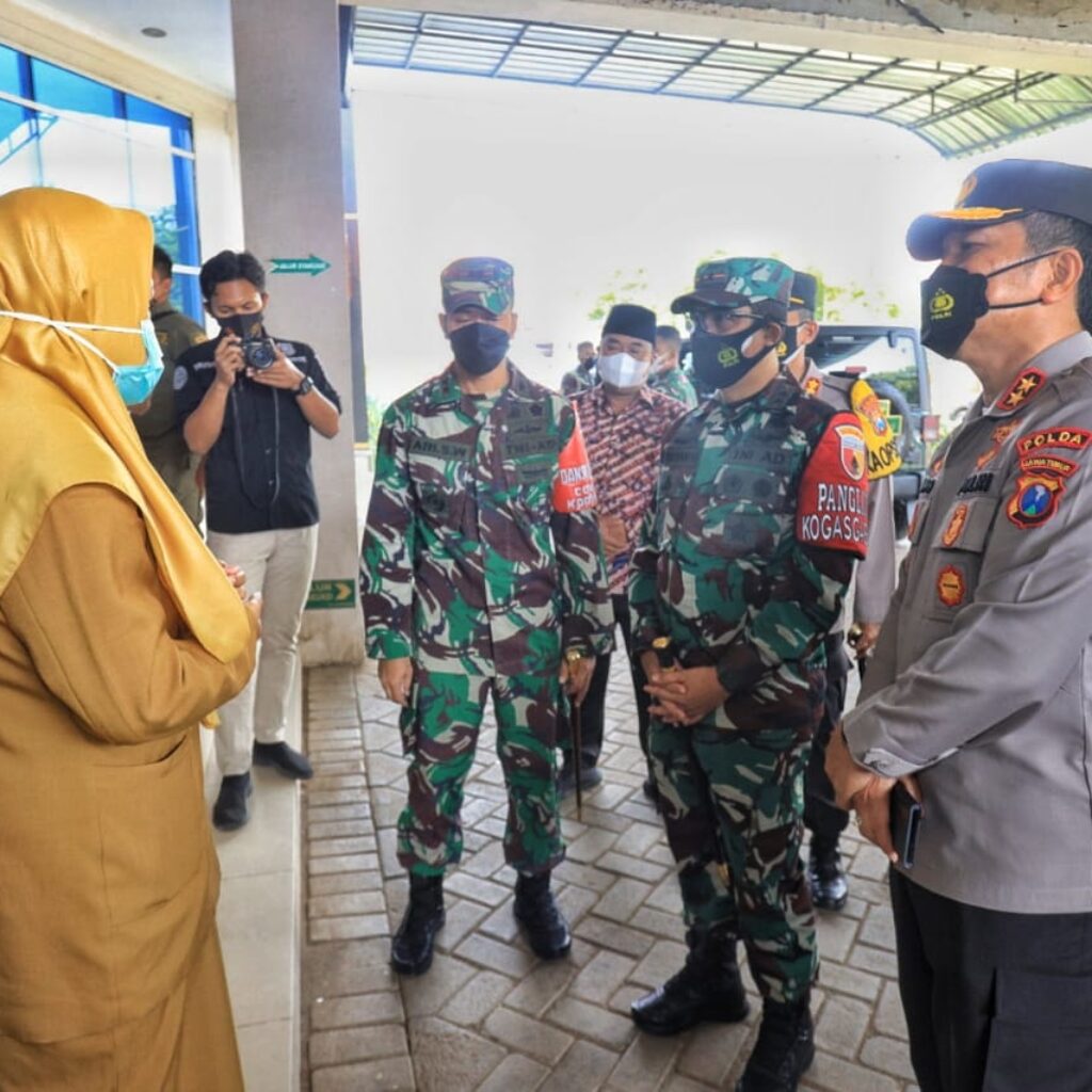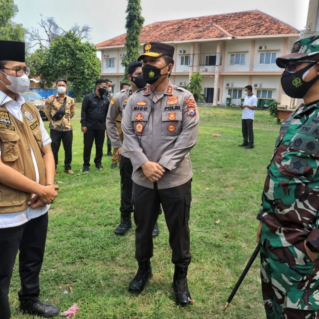 Gresspedia.id, Bangkalan-Jatim – Kapolda Jawa Timur Irjen Pol Dr Nico Afinta Karo-Karo, S.I.K., S.H., M.H., Pangdam V Brawijaya Mayjen TNI Suharyanto, S.Sos., M.M., didampingi Wakapolda Jatim, Pejabat Utama (PJU) Polda Jatim, Kapolres, Irdam, Pejabat Utama (PJU) Kodam V Brawijaya, Dandim dan Bupati Bangkalan, Senin (7/6/2021) siang, melakukan Management Krisis untuk mengantisipasi meningkatnya covid di bangkalan diantaranya melakukan pengecekan ruang Isolasi Kantor BPWS Bangkalan.