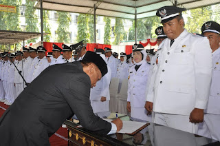 Bupati menyampaikan terima kasih kepada para Kepala Desa yang dilantik pada kali ini. “Bagaimanapun anda adalah miniature Pemerintahan di lingkup desa. Anda adalah cerminan pemerintahan secara keseluruhan. Kalau anda semua Kepala Desa ini bagus, maka Kecamatan akan bagus, demikian juga Pemerintahan kabupaten juga bagus dan sampai Pemerintahan pusat juga akan bagus” papar Sambari.