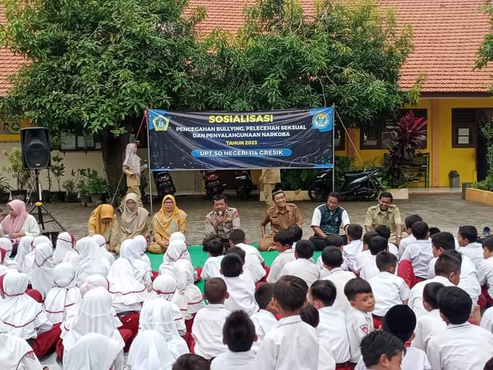 Kapolres Gresik AKBP Adhitya Panji Anom melalui Kapolsek Benjeng Iptu Alimin Tunggal menyampaikan, bahwa pembinaan dan penyuluhan kita berikan utamanya kepada pelajar yang jelas V dan VI terkait masalah bullying yang sering terjadi di lingkungan sekolah, selain itu pemahaman akan dampak penyalahgunaan narkoba juga kita sampaikan pada usia dini ini.