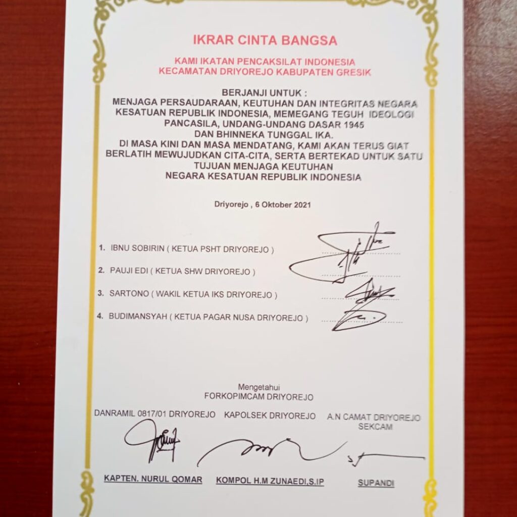 Kegiatan yang di prakarsai oleh Kapolsek driyorejo Kompol Zunaedi bersama muspika mendapat apresiasi dari para perguruan silat yang hadir. Dari masing-masing perguruan silat yang ada di wilayah kecamatan driyorejo mendukung langkah yang di ambil oleh muspika driyorejo dalam menciptakan dan memelihara keamanan dan ketertiban di wilayah kecamatan driyorejo.