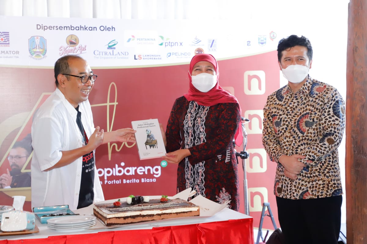 “Salah satu supaya bisa santai adalah ngopi bareng. Apalagi sama gubernurnya yang namanya juga Khofi, hampir menyerempet kopi. Jadi sebenarnya Bu Khofifah dengan Ngopibareng ini memang sudah cocok sekali,” candanya disambut gelak tawa para undangan lainnya.