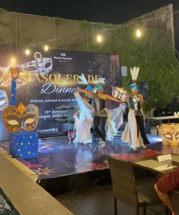 Acara Masquerade Night sendiri diselenggarakan pada hari Rabu, tanggal 31 Desember 2025, mulai pukul 18.00 hingga 22.00 WIB di Damar Kurung Restaurant, Lantai 3 Hotel Santika Gresik.