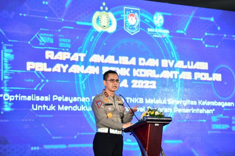 Bali – Kepala Korps Lalu Lintas (Kakorlantas) Polri Irjen. Pol. Drs. Firman Santyabudi, M.Si., bersama Direktur Utama PT Jasa Raharja Rivan Achmad Purwantono, dan Direktur Jenderal Bina Keuangan Daerah Kementerian Dalam Negeri (Kemendagri) Agus Fatoni menghadiri pelaksanaan Analisis Evaluasi (Anev) Pelayanan STNK Korlantas Polri T.A. 2023, di salah satu Hotel Kawasan Kuta, Bali pada Kamis (10/8/23).