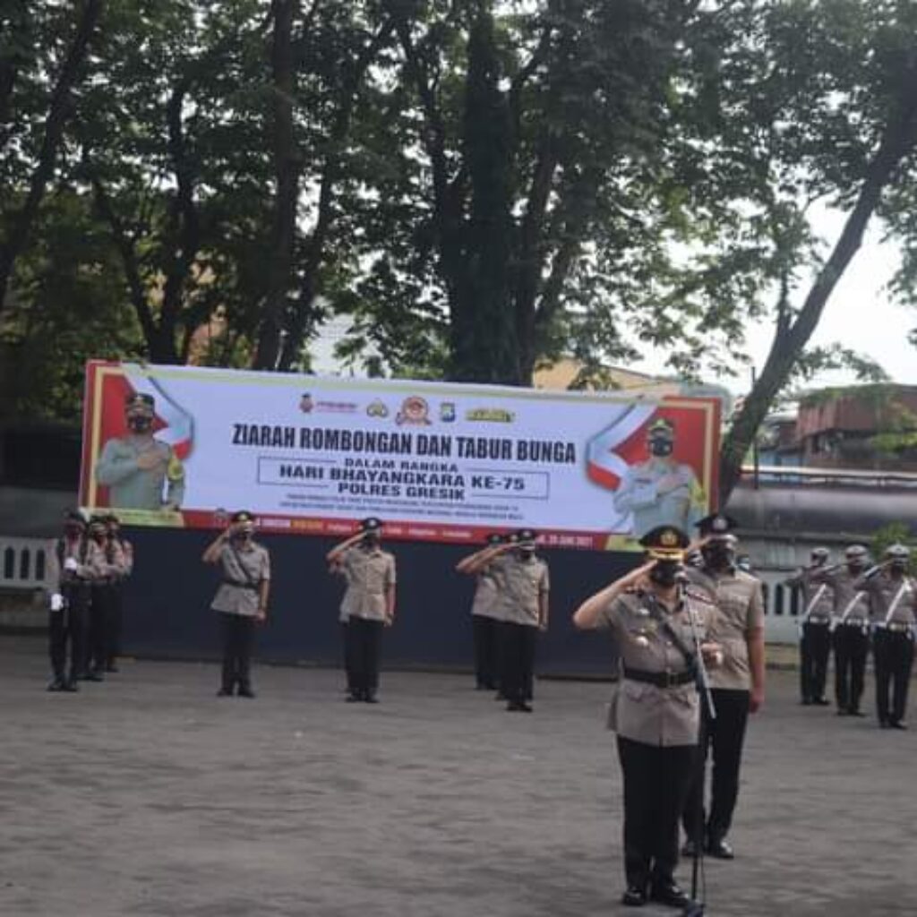 Gresik – Kapolres Gresik AKBP Arief Fitrianto, S.H., S.I.K., M.M. ,bersama jajaran menggelar ziarah makam pahlawan dan tabur bunga dalam rangka Hari Bhayangkara ke 75, Selasa (29/6/2021).