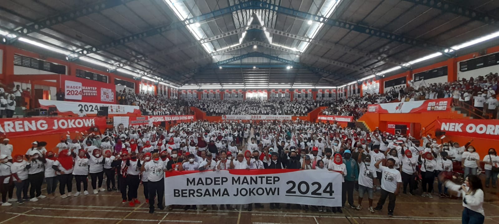 “Oleh karena itu, kami relawan Jokowi se-Kabupaten Banyumas satu komando ‘Madep Mantep 2024 Bersama Jokowi’” kata Timbul di Gor Satria, Purwokerto, Banyumas, Jawa Tengah, Minggu (27/3/2022).