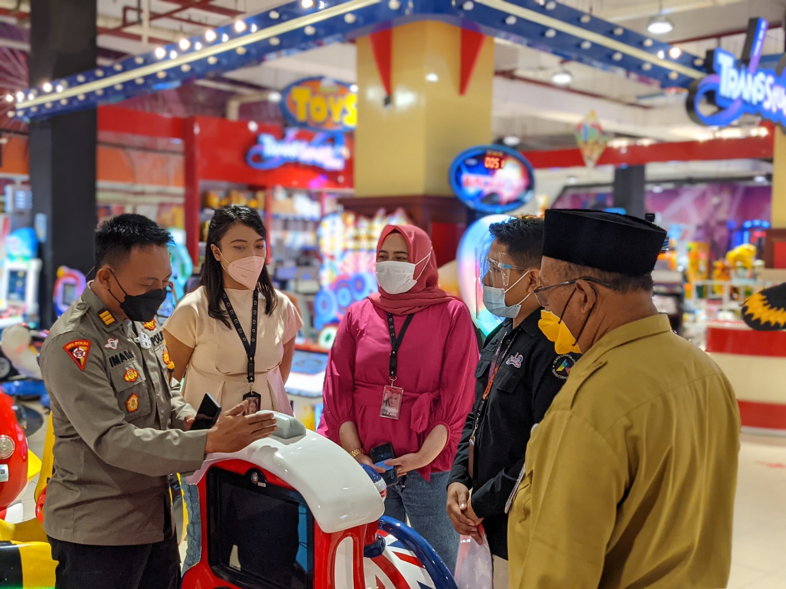 Gresik – Kabag Ops AKP Imam mustolih bersama Kepala Dinas Pariwisata dan Kebudayaan Kabupaten Gresik Sutaji Rudy melaksanakan peninjauan terkait penerapan protokol kesehatan ada arena permainan di Kabupaten Gresik. Selasa (26/10/2021).