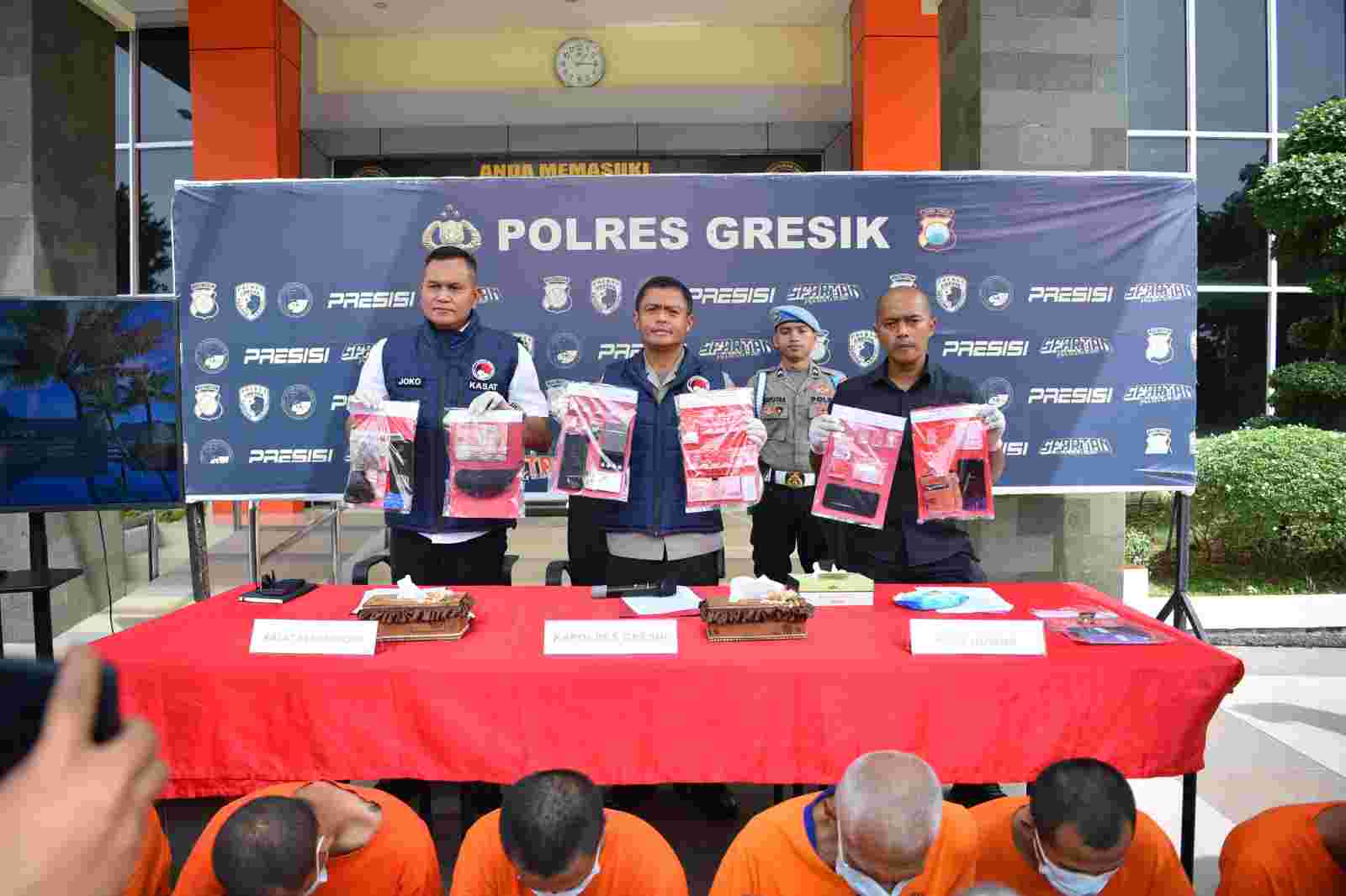 Penangkapan dimulai pada 8 April 2025, saat dua tersangka berinisial QM dan MA diamankan di Desa Banyuurip, Kecamatan Ujungpangkah. Dari tangan keduanya, polisi menyita satu paket hemat sabu, dua unit handphone, dan satu unit sepeda motor. Pengembangan dari penangkapan ini membawa tim menuju tersangka MF di Desa Gedangan, Sidayu, keesokan harinya.