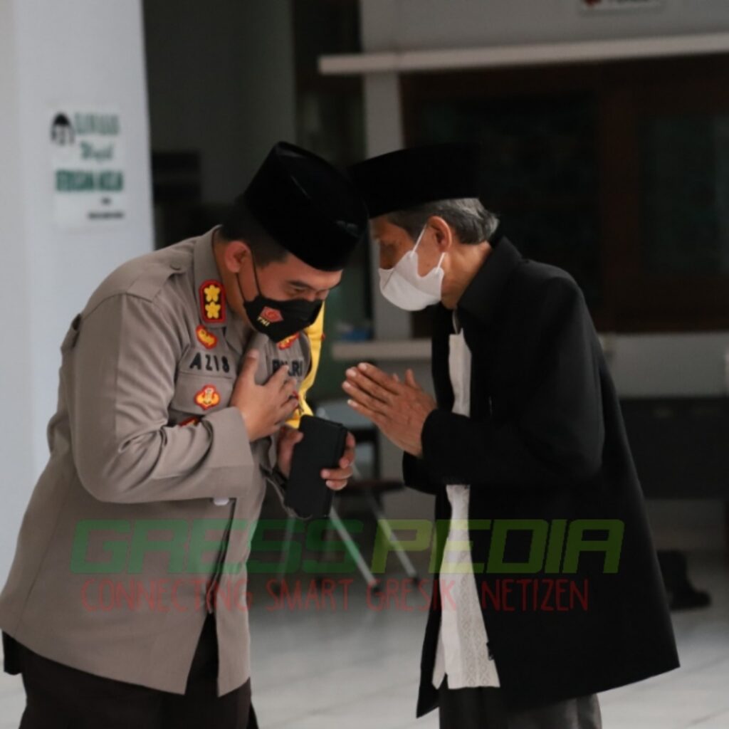 Gresspedia Gresik – Kapolres Gresik AKBP Mochamad Nur Azis, S.H., SIK., MSi., silaturahmi bersama Ketua MUI Gresik KH Mansoer Shodiq Majelis Ulama Indonesia (MUI) bersama Polres Gresik bakal menggelar vaksinasi yang menyasar kelompok agama. Antara lain, pengurus MUI kabupaten dan kecamatan, alim ulama, guru TPQ, guru diniyah dan masyarakat sekitar.