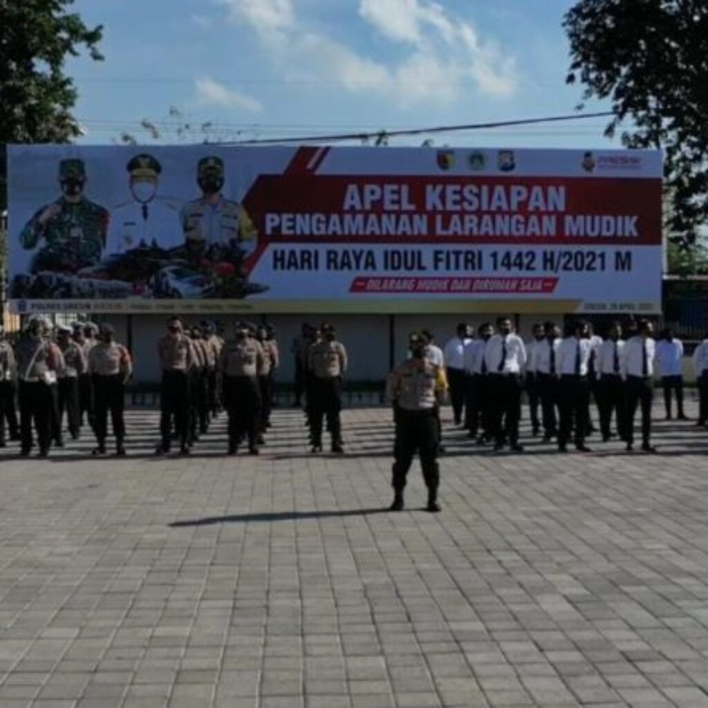 Gresspedia Gresik – Polres Gresik menggelar apel gabungan TNI, Polri dan Pemerintah Daerah dalam rangka Kesiapan Pengamanan Larangan Mudik Hari Raya Idul Fitri 1442 H , bertempat di halaman Mapolres dengan tetap mematuhi Protokol Kesehatan, Senin (26/04/2021).