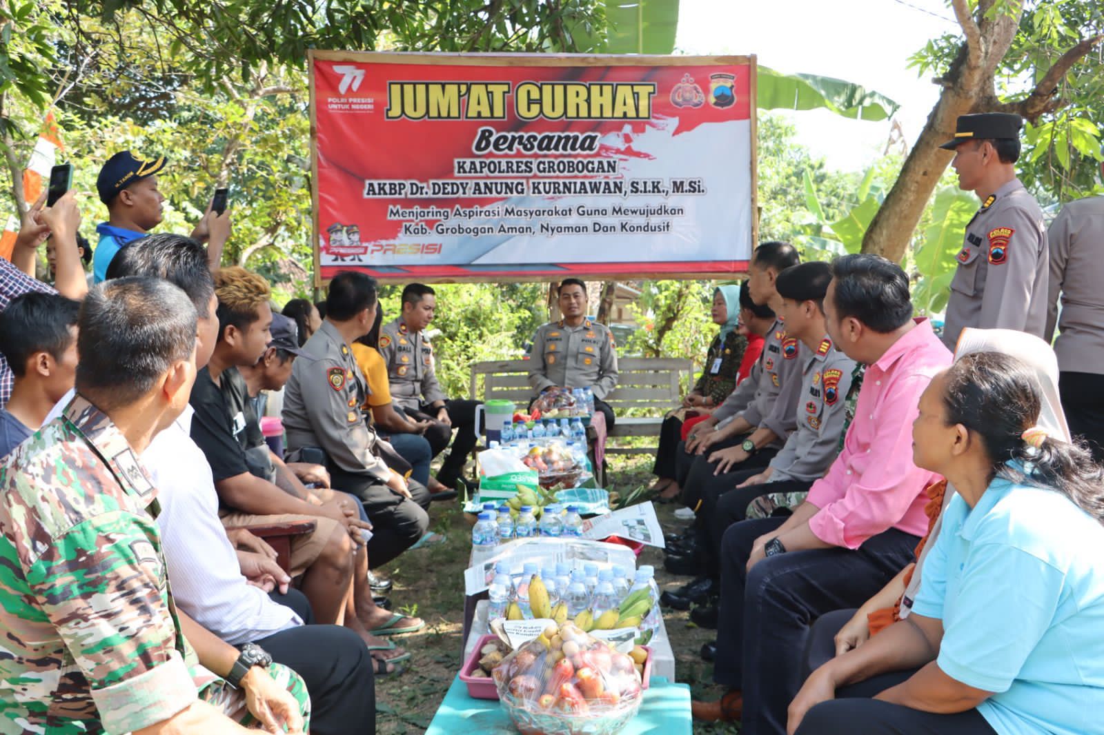 Kapolres Grobogan AKBP Dedy Anung Kurniawan saat penyaluran bantuan air bersih mengerahkan 1 mobil water cannon yang biasa dipakai menghalau massa saat aksi demonstrasi, 4 mobil tangki, 4 mobil patroli yang telah dimodifikasi, dan 50 anggota Bhabinkamtibmas dengan motor bronjong berisi air bersih. Menurutnya, dalam mengatasi kekeringan yang terjadi di wilayah Grobogan, pihaknya juga telah melakukan koordinasi dengan BPBD dan PDAM Grobogan.
