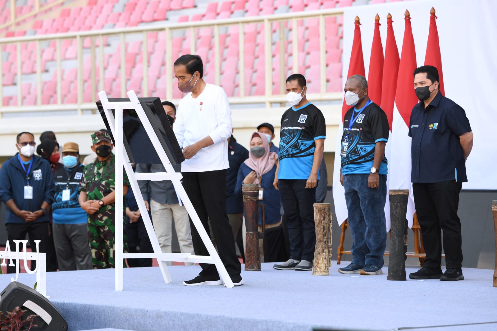Turut mendampingi Presiden dalam peluncuran tersebut yaitu Menteri Pemuda dan Olahraga Zainudin Amali, Sekretaris Kabinet Pramono Anung, Menteri BUMN Erick Thohir, Menteri Investasi/Kepala BKPM Bahlil Lahadalia, Bupati Jayapura Mathius Awoitauw, dan Presiden Direktur PT Freeport Indonesia Tony Welas. (Red)
