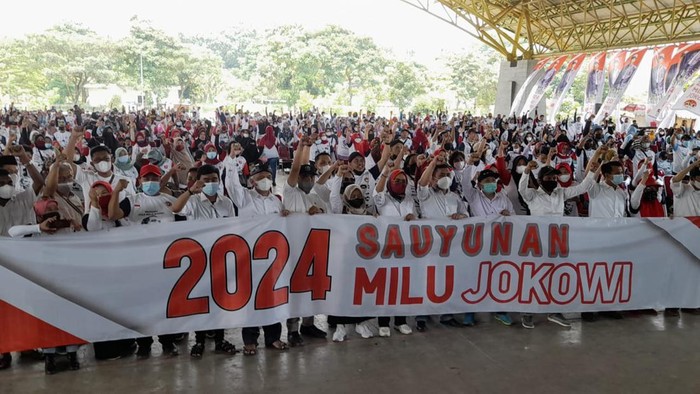 Bandung – Relawan Presiden Joko Widodo (Jokowi) se-Bandung Raya menggelar silahturahmi sekaligus deklarasi komitmen di Dome Bale Rame Kabupaten Bandung, Jawa Barat, Sabtu (19/3/2022). Kegiatan itu setidaknya dihadiri kurang lebih 1.600 relawan.