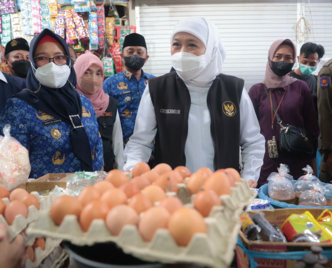 “Yang kita lihat pergerakan harga di pasar ini pertama adalah kenaikan harga telur ayam di atas HET, dan yang kedua adalah kenaikan beras,” tegas Gubernur Khofifah.