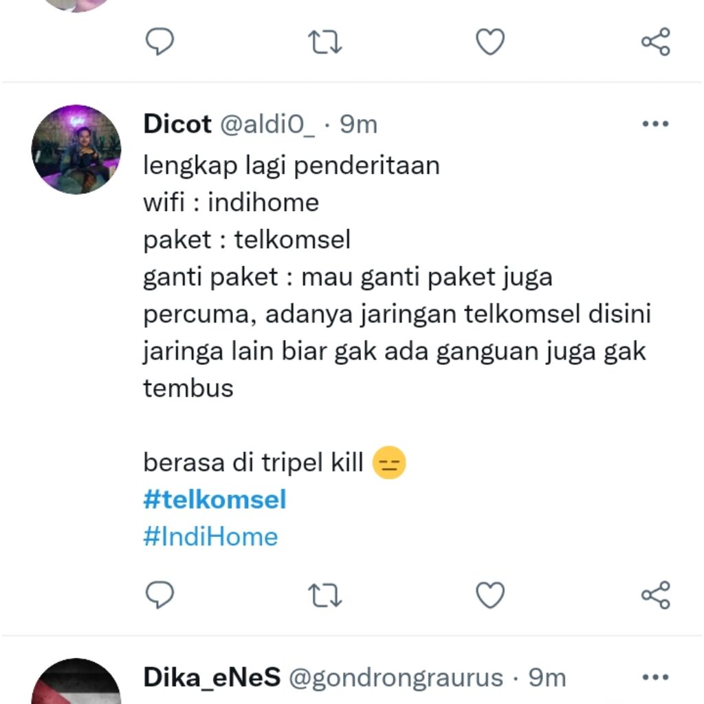 mengeluhkan hal serupa. “lengkap lagi penderitaan, wifi : indihome, paket : telkomsel
