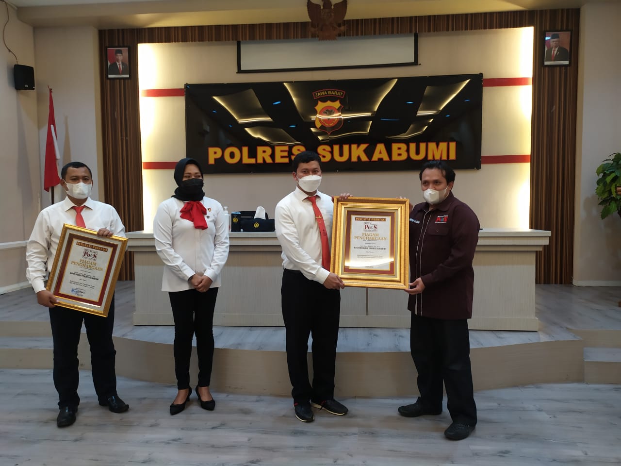 Dalam kesempatan tersebut Polisi Selebriti mengapresiasi Polres Sukabumi yang diterima penghargaannya oleh Kapolres Sukabumi, Kasatreskrim Polres Sukabumi.