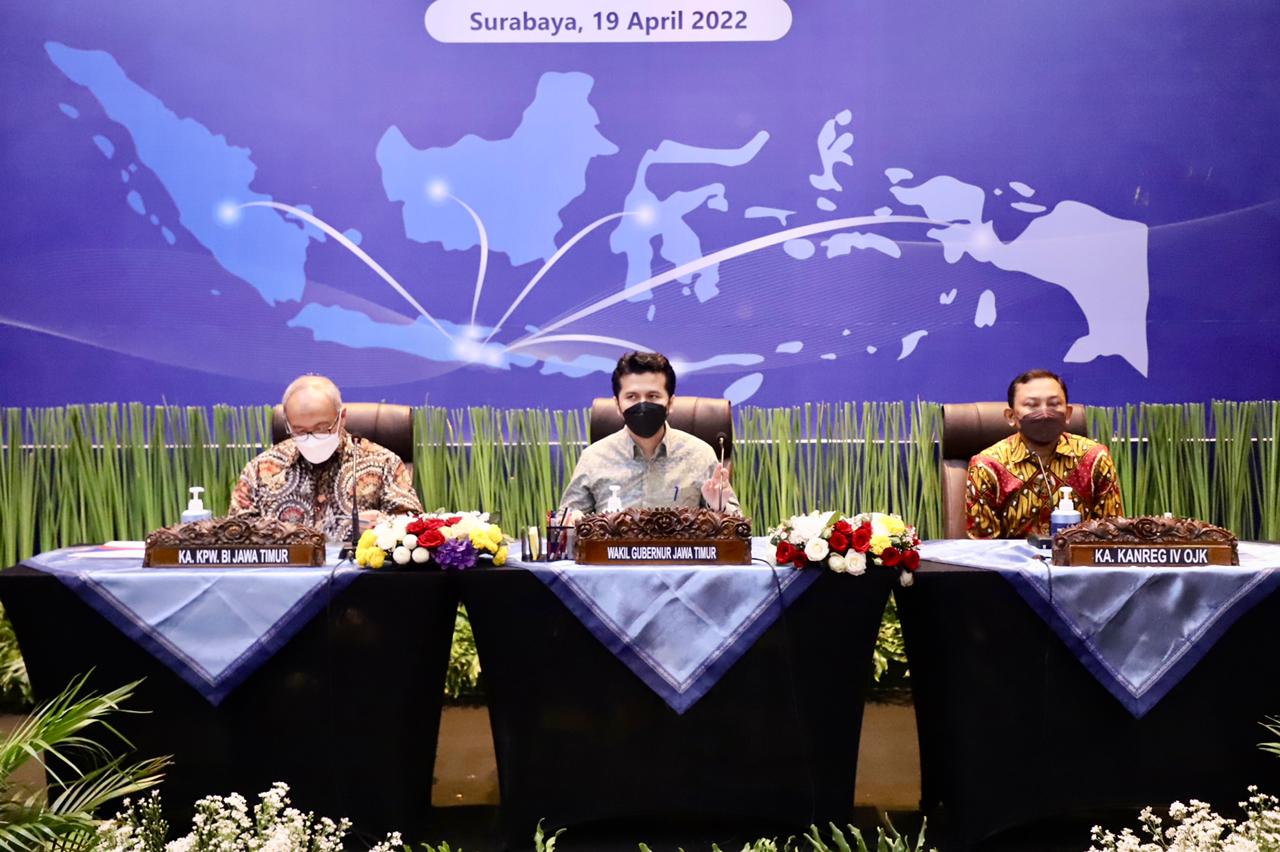 Surabaya – Wakil Gubernur Jawa Timur Emil Elestianto Dardak mengajak segenap Tim Pengendalian Inflasi Daerah (TPID) Jawa Timur untuk menjaga lonjakan inflasi di Jatim. Wagub Emil pun mengusulkan empat strategi sebagai upaya pengendalian. Yakni, Keterjangkauan Harga, Ketersediaan Pasokan, Kelancaran Distribusi, dan Komunikasi Efektif.