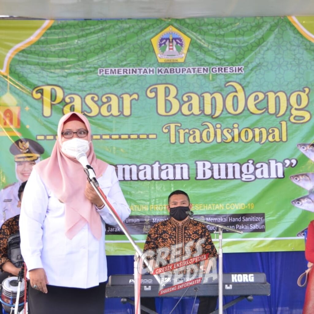 Gresspedia Gresik – Pada Rabu (5/5/2021) sore ini selepas Ashar, Wakil Bupati Gresik Aminatun Habibah secara simbolis membuka Pasar Bandeng sebagai tanda dimulainya pelaksanaan pasar bandeng di 10 titik.