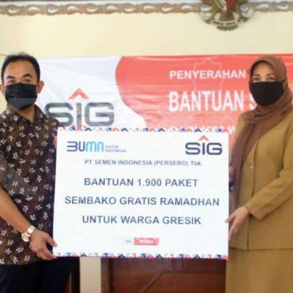 Gresik – PT Semen Indonesia (Persero) Tbk (SIG) melalui program SIG Peduli membagikan 1.900 paket sembako senilai Rp350 juta kepada warga terdampak Covid-19, di Sembilan kelurahan di Kabupaten Gresik.